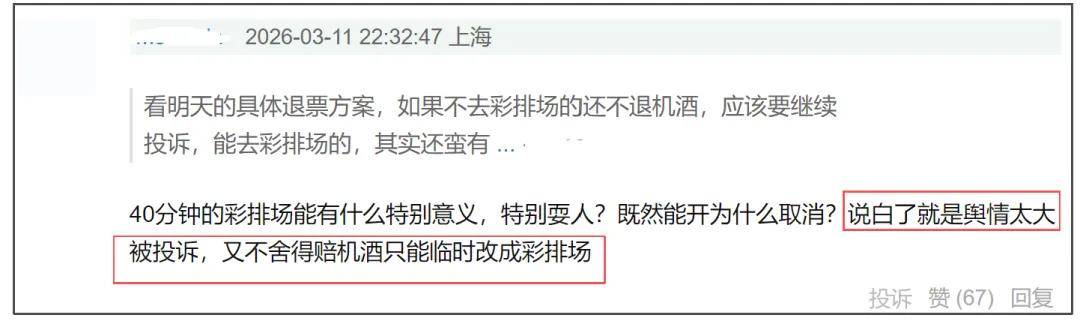 而退票引发的舆情有多猛呢?香港IP的网友现身说法,称香港消委会会调查他们是否违反《商品说明条例》,如果有就可以告他们,间接暴露了一个潜在信息——赔偿免费彩排场可能是怕被处罚。